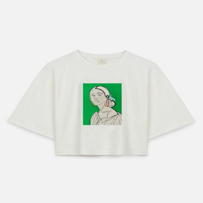 تي شيرت نسائي بلون أبيض بطبعة ملفتة